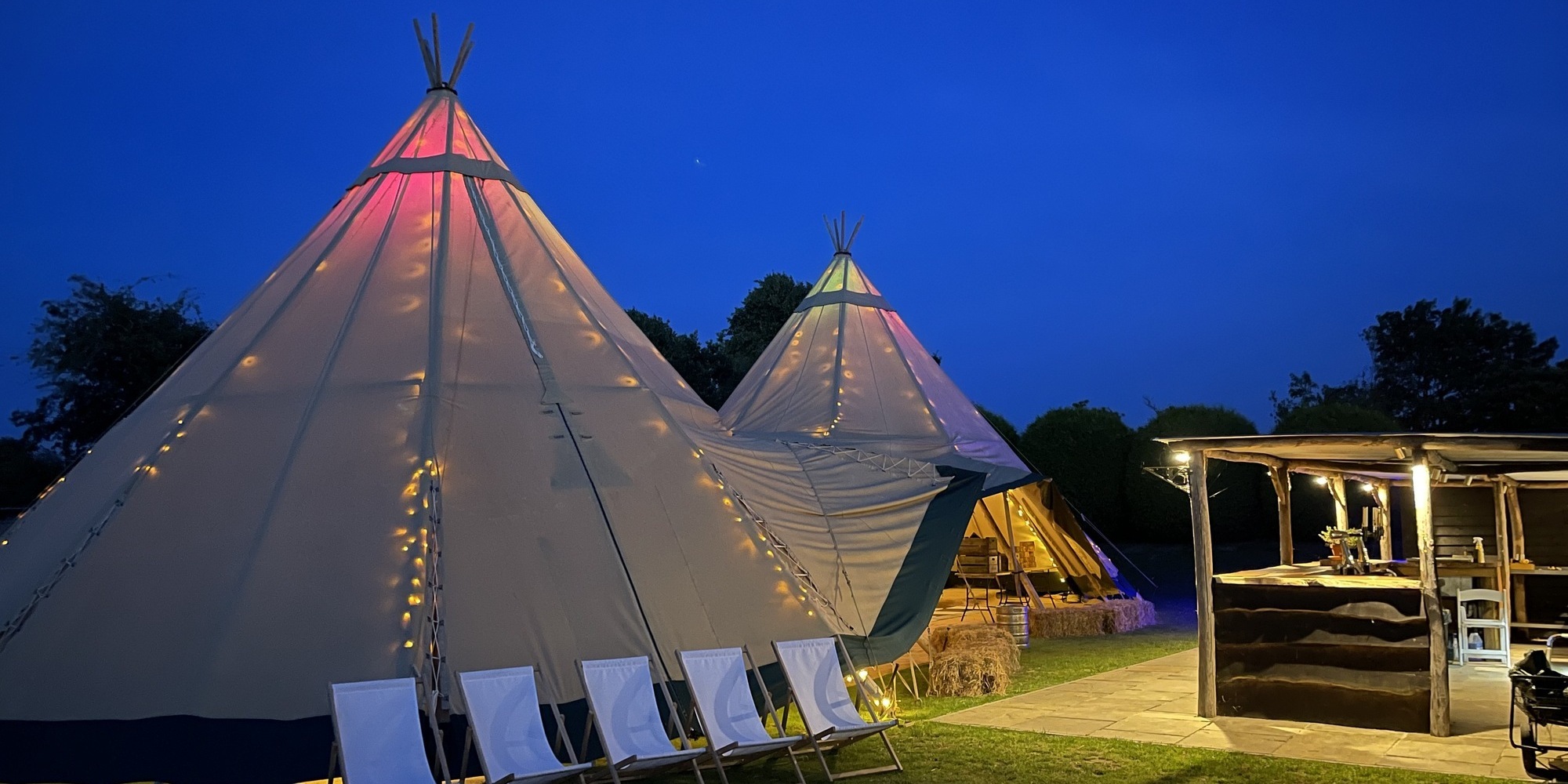 We are very proud of the business we have built and the experiences we provide for our guests and clients. Whether you want to hire our Triple Hat Tipi Marquee for a wedding that can easily seat 140 guests, the stretch tents that can easily seat 100 guests or build a Bell Tent village with 40 fully furnished tents accommodating 160 guests we really do have you and your guests covered - This is why White Dog Events have become the trusted partner for all things events