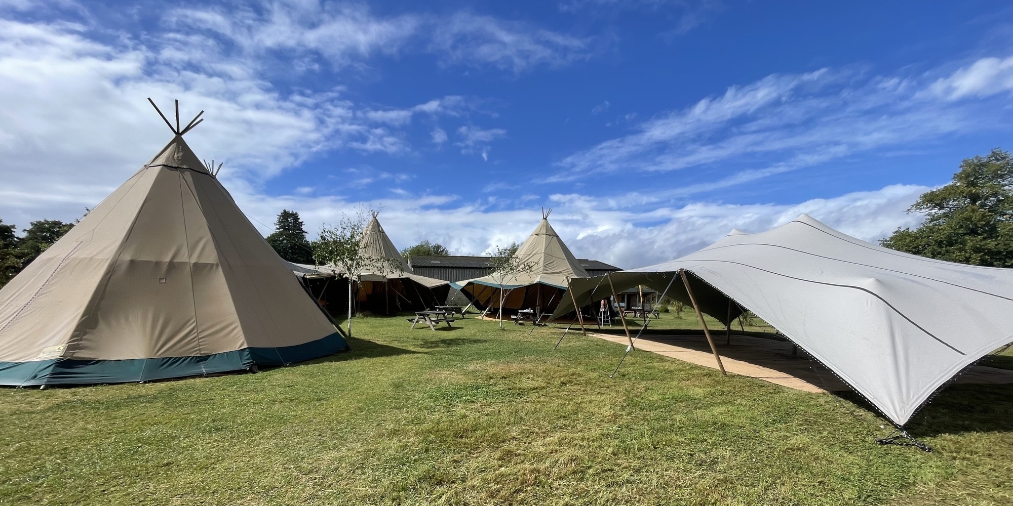 We can provide glamping for 160 people in our fully furnished Bell Tents and provide covered spaces for your presentations and team building exercises during the day